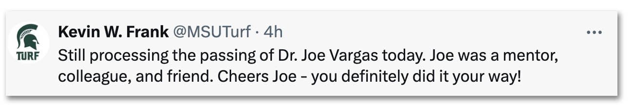 “He did life his way,” said Gordon LaFontaine, the longtime director of the Michigan Turfgrass Foundation and one of Vargas’ best friends. “He changed things for many superintendents, and he definitely did it his way.”