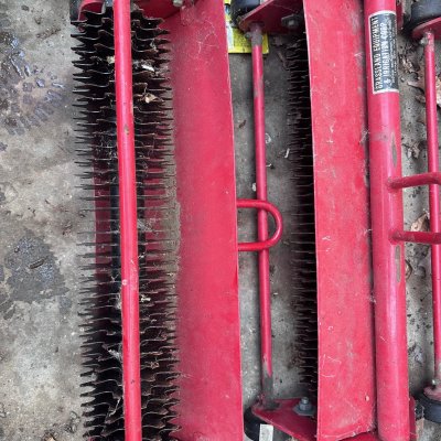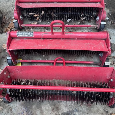 Set of 3: Toro Greensmaster Verticut Reels. Model 04416. Like new, wheels and reels all roll free. No bent teeth, as shown in photos.