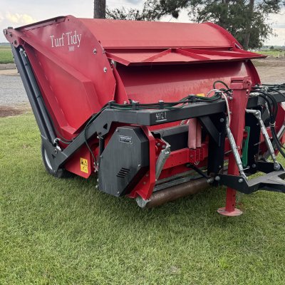 Redexim Turf - Tidy 3000 Comes as is with both the sweeping shaft and the cutting shaft. All that is needed is the drive shaft. All hydraulics work as should and lifts to dump with no problems. This unit is in great shape.