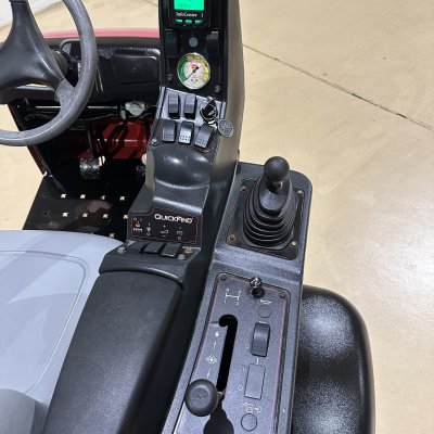 - Quick Find™ Console – The Quick Find™ Console helps the operator intuitively find boom and actuator switches with the palm of their hand and places command of all key vehicle and sprayer systems at the operator’s fingertips for ease-of-use and improved control. The Info Center display and the analog pressure gauge, which are conveniently located just above the boom section and actuator switches, keeps all key sprayer operation data in the operator’s line of sight.