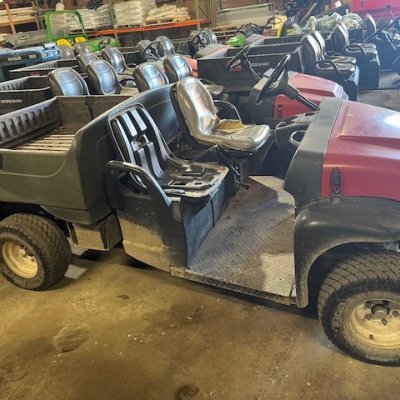 2wd cart equipped with 12 HP Kohler engine. Versatile utility vehicle with electric dump feature for the bed. Perfect for golf course maintenance, landscaping and/or groundskeeping.
