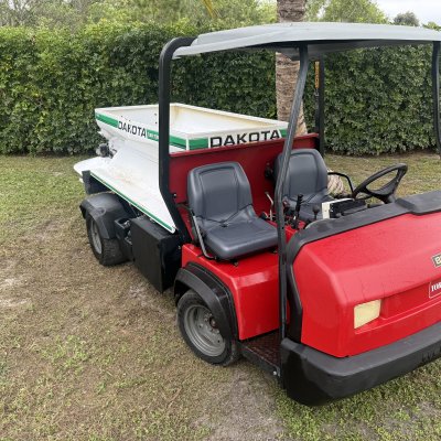 This is for the sale of a great running functional .Toro workman with Dakota 410 top dresser . High flow truck to run Dakota. Has a Kubota efi gas engine .
