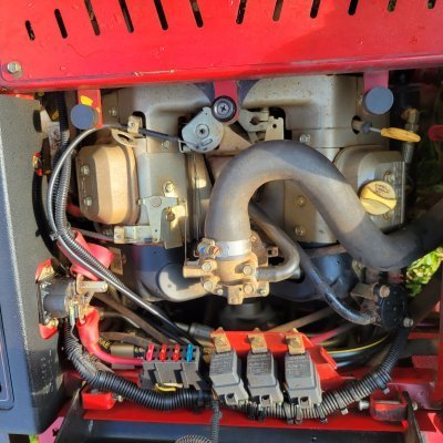 3WD bunker rake with front plow, NEW mid-rake tines, NEW rear rake, NEW fan rake, NEW seat and NEW seat frame. NEW front tire. Ready to rake! 16hp Vanguard gas engine.