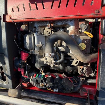 -engine turns over with a jump, fires on starting fluid