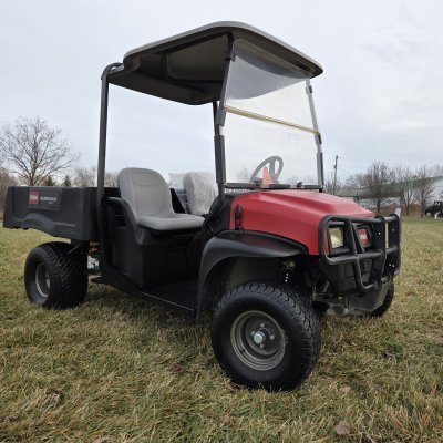 2WD. Medium duty Workman with 1650 Ib load capacity. Has NEW seats and NEW air filter. I will have to check on status of other fluids and filters. 480 cc gas unit. Comes with canopy, split windshield, and brush guard.