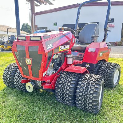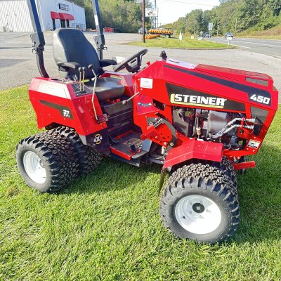 Very lightly demo’d Steiner 450 with the Vanguard EFI 37hp. Unit comes equipped with dual wheels, weight kit, and hand throttle control.