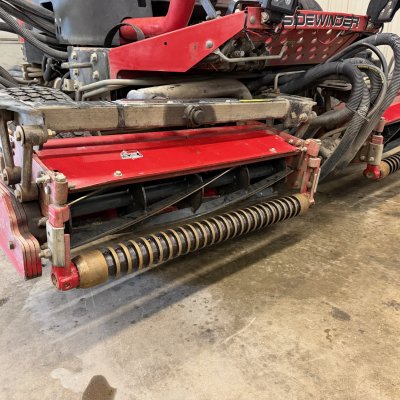 27" wide 5 blade 7 inch reels. Minor rust on rear shield of rear cutting unit