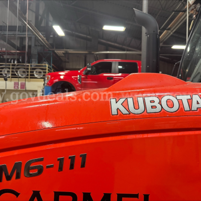 Clean, low-hour Kubota M6-111 tractor equipped with 4WD and a premium enclosed cab w/Heat & A/C. This tractor has only 847 hours and is powered by a 114-horsepower diesel engine.