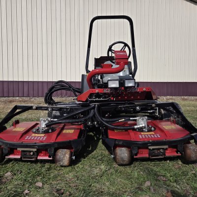 Toro Groundsmaster 3500-D Sidewinder is a 3-wheel drive rotary trim mower powered by a 24.8 hp Kubota diesel engine. It features a unique Sidewinder system that slides the cutting decks 12 inches left or right (24 inches total travel) for precise edging, with a 68-inch standard width of cut.