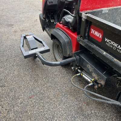 This attachment mounts to a Toro HDX and is used to edge cart paths. Used once Like new condition. Fully operational. Cart not included.